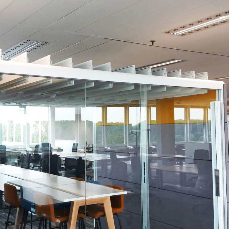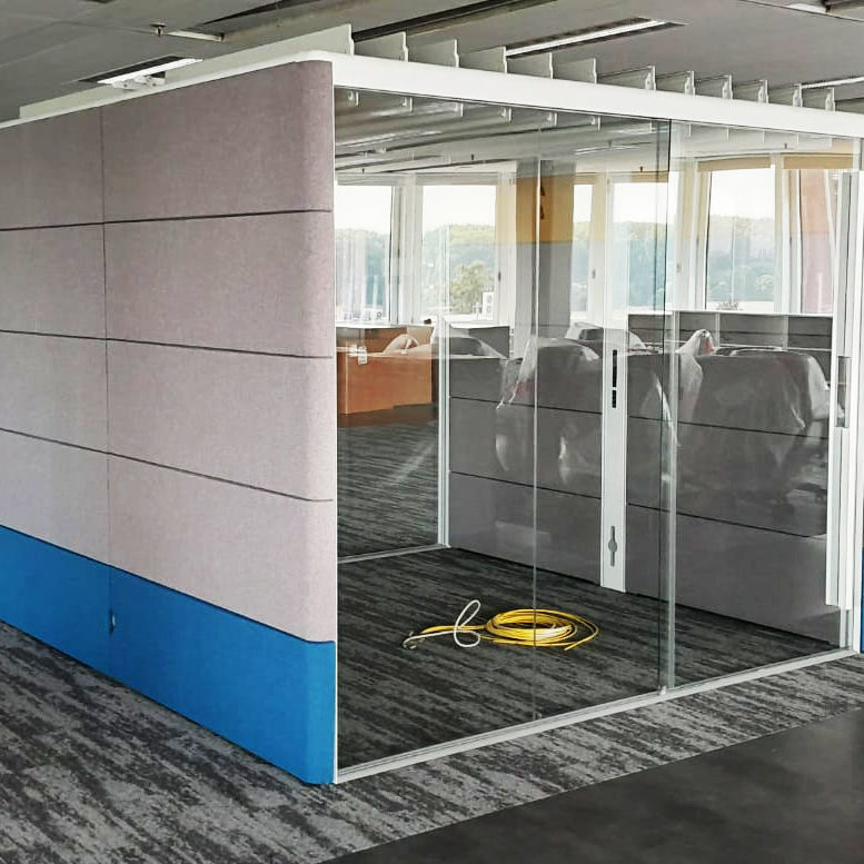Das eingespielte Team von systemtrans montiert millimetergenau die gewünschten Elemente. In kurzer Zeit entsteht eine optimale Akustiklösung, die Ihnen alle Flexibilität für zukünftige Veränderungen lässt.
