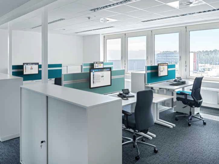 Das Objekt erforderte mit insgesamt 1.050 Arbeitsplätzen eine schnelle und genaue Abwicklung der Montage. Diese logistische Herausforderung erfüllte ASSMANN und systemtrans. Um den laufenden Betrieb sicherzustellen, wurde die Einrichtung in zwei vierwöchige Phasen gegliedert.
