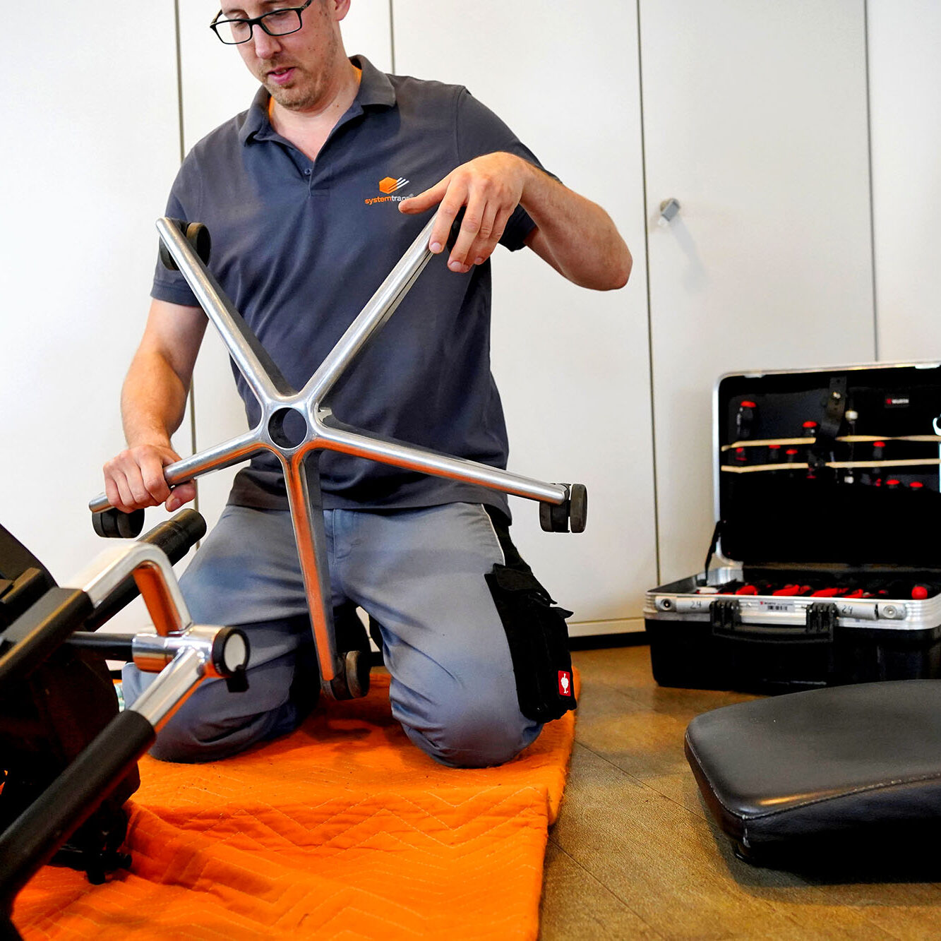 Unsere Spezialisten überprüfen jeden einzelnen Bürostuhl zugunsten des ergonomischen Arbeitens auf Stabilität und Funktion.